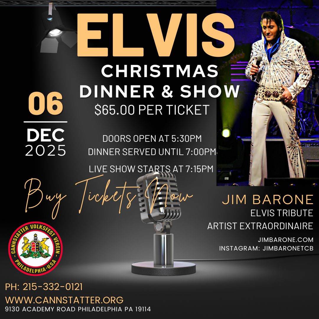 12-06-25 Elvis Christmas Show December 6 2025 | 5:30 PM - 10:00 PM 9130 Academy Road, Philadelphia, PA 19114 Event Over